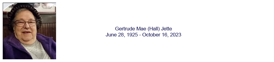 Gertrude Jette spent her life cherishing the historical significance of the Willamette Valley. She served as treasurer for the St. Paul Historical Society for many years, finally retiring in 2015. Born in Plainfield ,Iowa, she and her family moved to Oregon in 1938, settling in the Bald Mt. area of McMinnville. They served as lookouts for Japanese bomber planes in Yamhill and Tillamook counties. She attended Linfield College in McMinnville from 1945 until 1947, when she married Bob Jette. She returned to Linfield in 1984 and got her degree in Home Economics. During her lifetime of dedication to Oregon history, she was a member of The Daughters of the American Revolution. She served on the Building and Grounds Committee for the Newell house, owned by the D.A.R. Living right next to Champoeg, she was a member of the Champoeg Historical Society, the St. Paul Mission Historical Society, and the Daughters of Union Vets of the Civil War. History was her passion, and family was her love. She and Bob had 4 boys, Norm, David, George, and Dan, and 1 daughter, Lorene. She was known for her apple cake, peach cobbler, popcorn balls, and her famous egg noodles. She and Bob were known for their love of dancing and socializing in the community. She is buried in the St. Paul Cemetery.